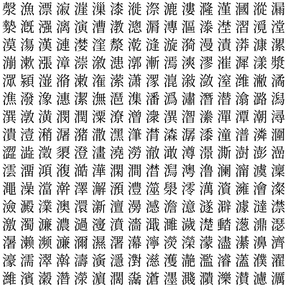 Unicode CJK 6f00-6fff, 256 letters, SVG file for 2d and 3d