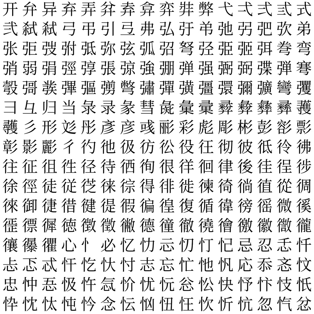 Unicode CJK 5f00-5fff, 256 letters, SVG file for 2d and 3d