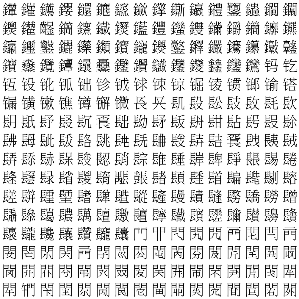 Unicode CJKEB 28c00-28cff, 256 letters, SVG file for 2d and 3d